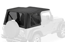 Bestop 51124-15 Black Denim Replacement Soft Top with Tinted Side and Rear Windows and Untinted Half Door Skins is the only replacement top that has the patented Belt Rail attachment system and American fabric specially constructed to stretch for easy installation then return to its original shape for tautness All Replace-a-tops are built to O.E. specifications No-drill installation required ... »»
